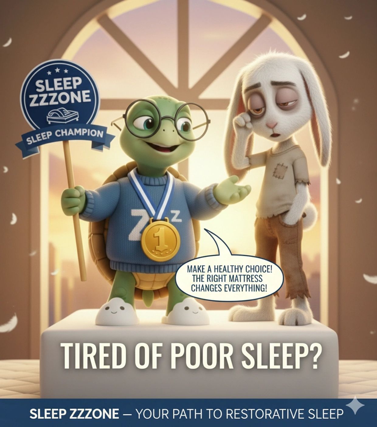 Unlike the sleepy Hare Loner, this nerdy tortoise Zoner got a great night’s rest on a comfy mattress the previous night. That’s why he woke up fresh, focused, and won the race.